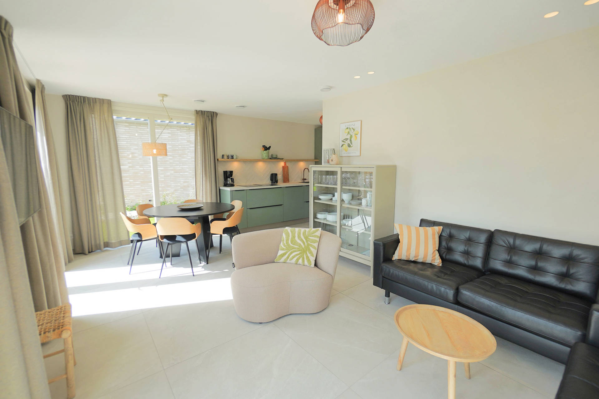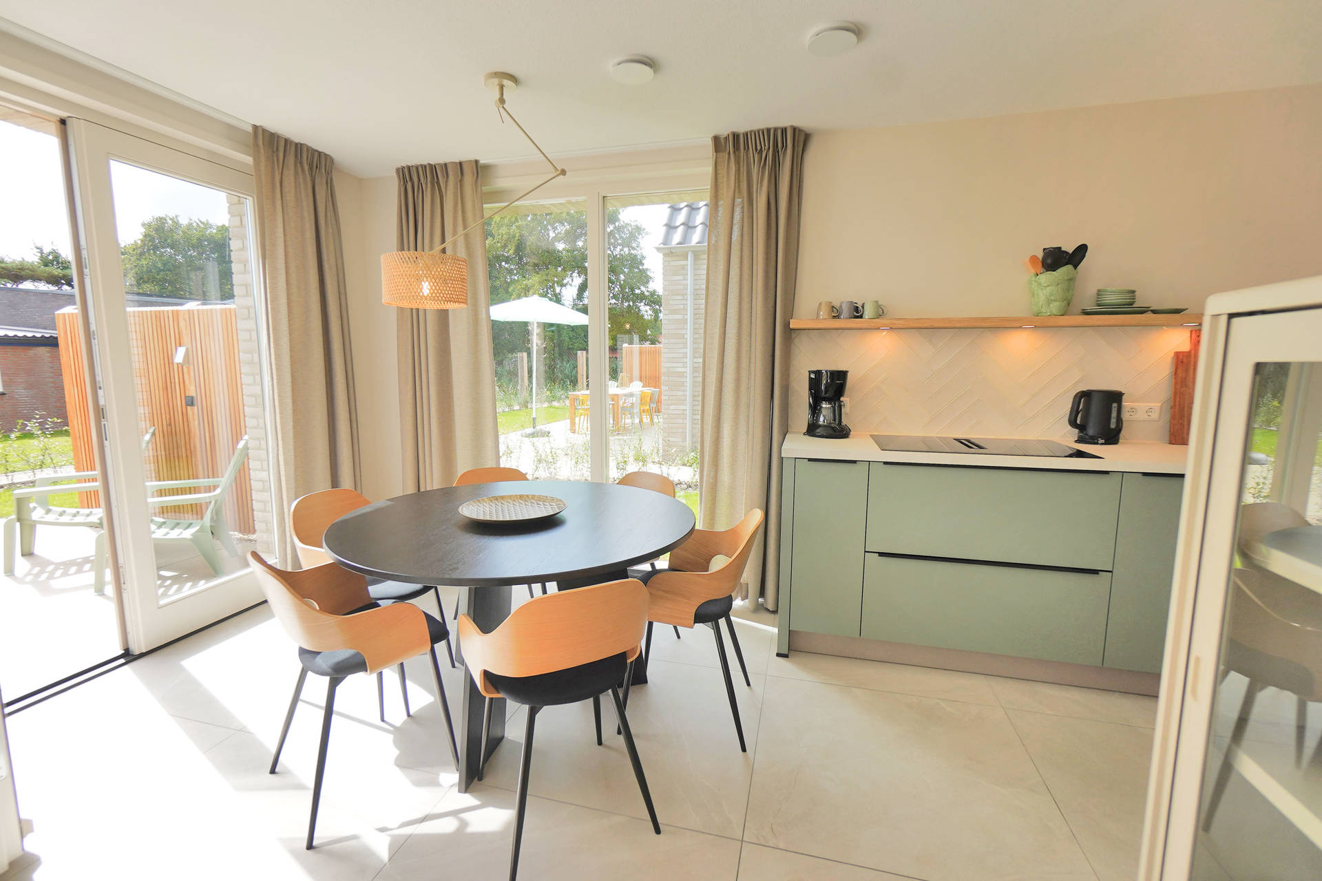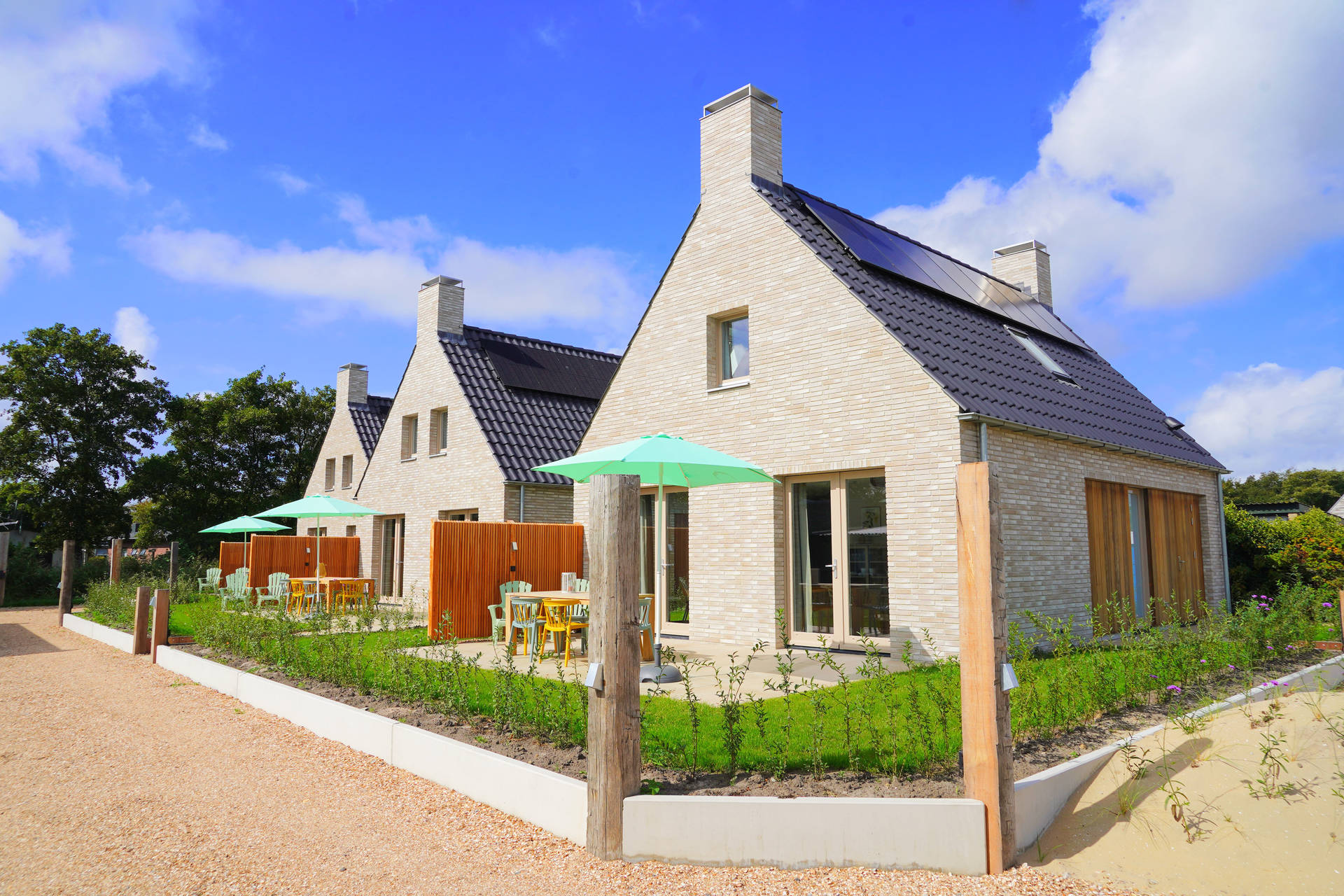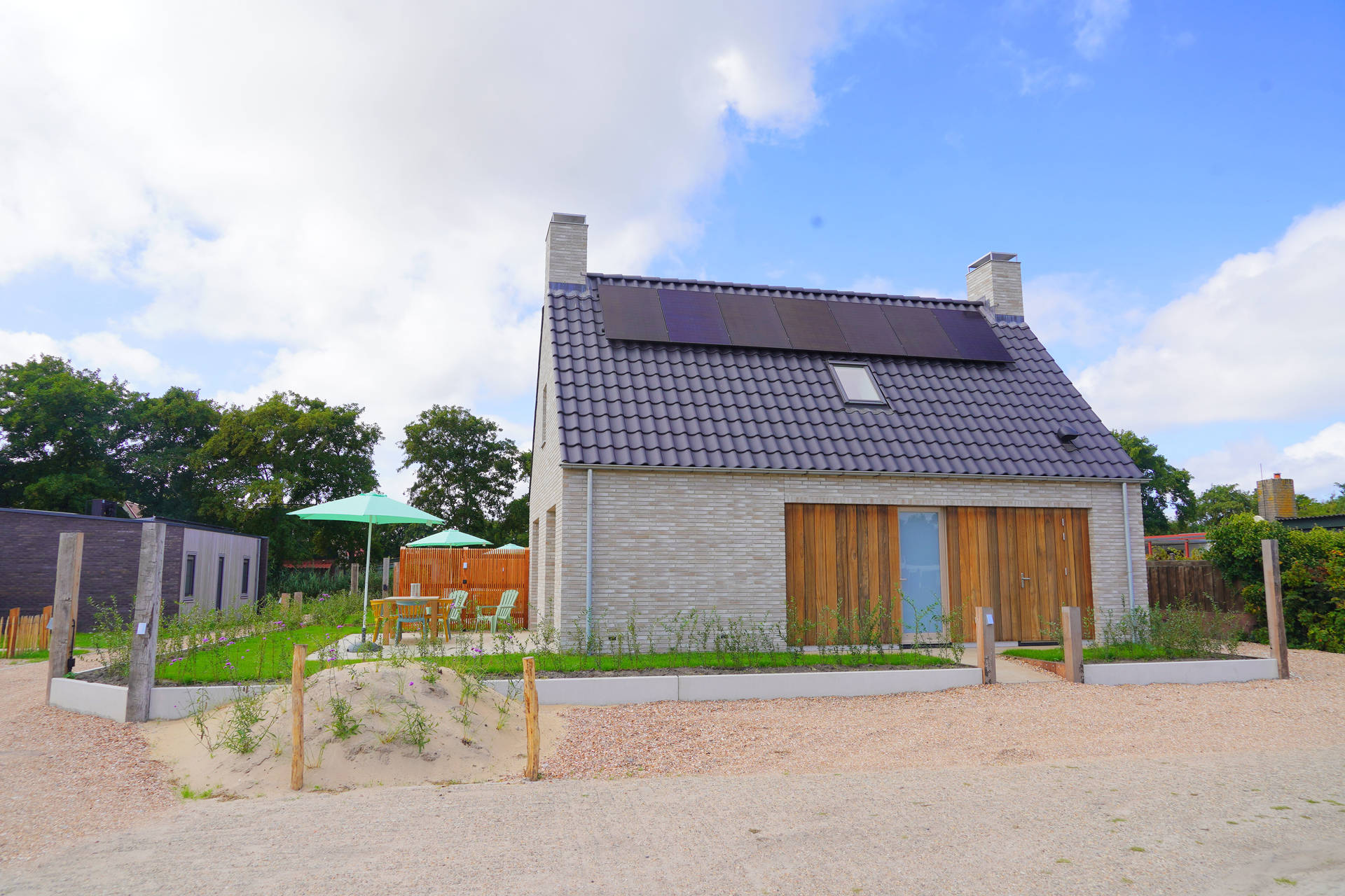 Inside, Holiday Home Zon offers a smart and practical layout with three comfortable bedrooms, including one on the ground floor with its own en-suite bathroom – ideal for those who prefer everything on one level. The open-plan kitchen is equipped with modern appliances such as an induction hob, fridge with freezer compartment, and dishwasher – perfect for preparing a generous breakfast or a relaxing dinner after a day by the sea.