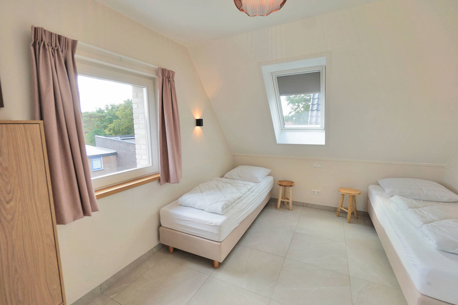 Upstairs, you’ll find two additional bedrooms and a second bathroom with a walk-in shower. Holiday Home Zon offers everything you need for a relaxing and carefree seaside holiday. For added convenience, the house also includes a washing machine, dryer, and a charging station for electric vehicles.